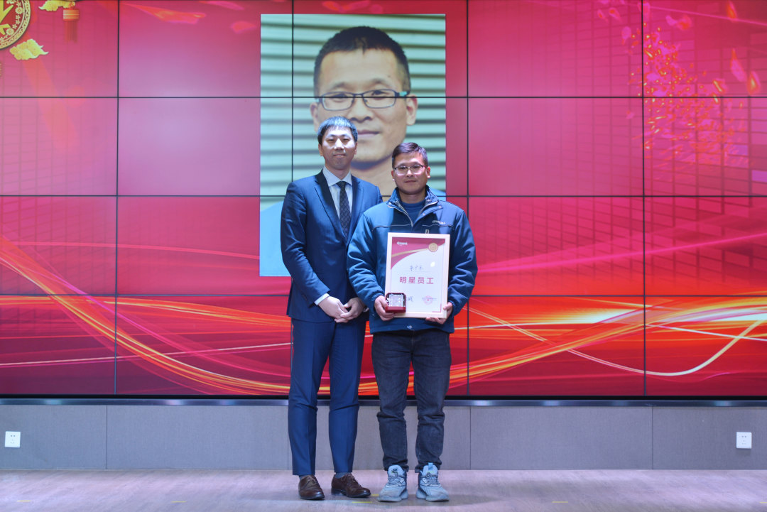 公司2021年度“明星員工”殊榮花落行政部機修工朱廣樂。大會表彰他兢兢業業、任勞任怨,在平凡的工作中作出了不平凡的貢獻,為員工樹立了榜樣。