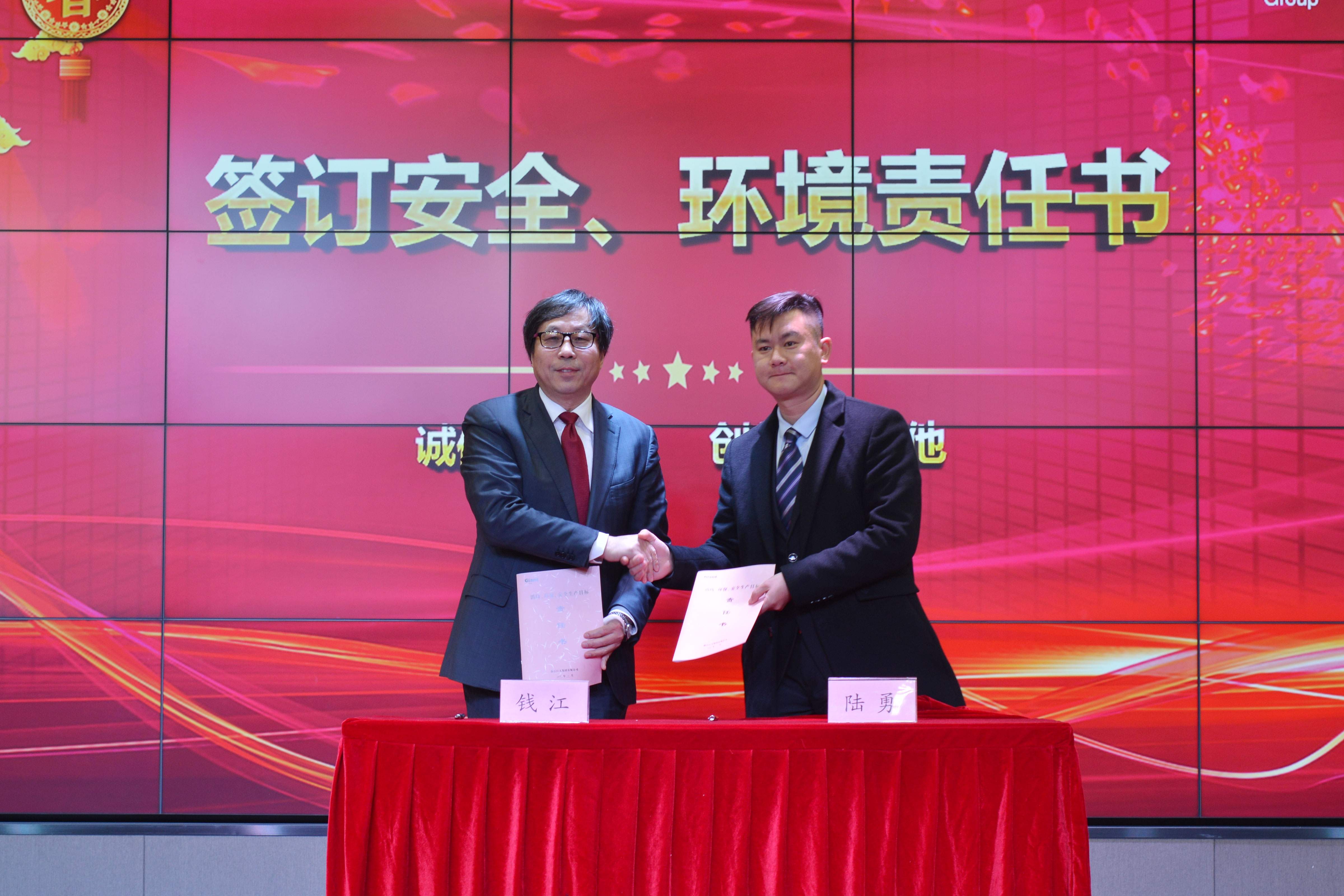 安全生產管理守護著員工物心幸福與生命健康以及企業社會責任,是公司頭等大事,大會舉行年度安全責任書簽訂儀式,公司副總經理顧惠江作安全與環境教育宣講。